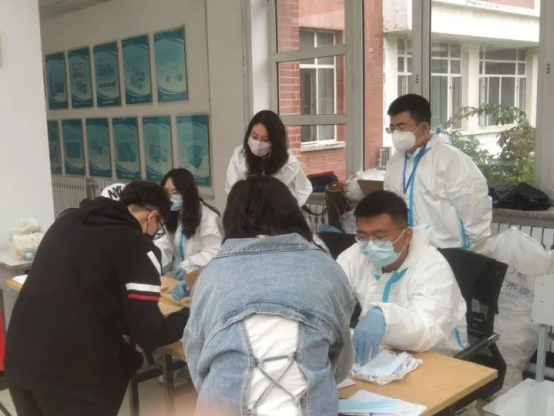 学子们通过志愿者的引导,从一号门进行体温检测后进入校园,首先到一教阳光大厅报道,更换下崭新的更加安全的口罩并上交体温监测表,工作人员将核酸检测条形码从密封的文档中拆开分发给学子,老师和工作人员们耐心的指引着学子们井然有序的进行核酸检测。完成检测的同学们在工作人员的帮助下带着入住公寓证明返回已经严格消毒的寝室进行隔离,等待核酸检测结果,并且为等待检测结果的学子们准备了营养均衡的餐包。
