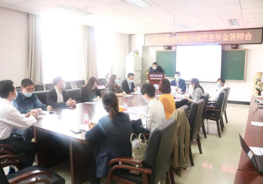 2021年5月30日上午,米乐mile官方网站2021届硕士研究生毕业论文答辩会在第一教学楼三楼会议室举行。此次会议学院高度重视,由王玉学院长担任答辩领导组组长,领导应用数学研究生毕业答辩的全部工作。研究生部的领导对本次答辩亦是非常重视,由赵立新主任亲自带队指导米乐mile官网研究生的毕业答辩。整个答辩过程规范、严谨、流畅,充分显示了答辩会的学术性、严谨性和公正性。