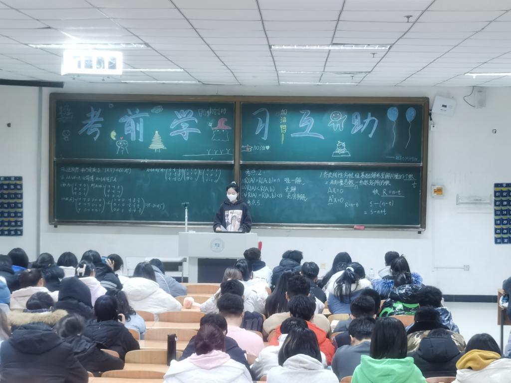 应用统计学专业20级3班孙吉嘉、王钰翔同学分别从不同角度通过以题代练的方式逐一分析考试题型和答题技巧,并结合以往的答题经验和常规考点进行整理规划。他们强调数学的基础知识非常重要,一定要筑牢根基,打好基础,注重平时的积累,要养成及时整理笔记、反复做题,并对错题及时纠正的好习惯,他们的建议使大家面对接下来考试时多了一份自信。