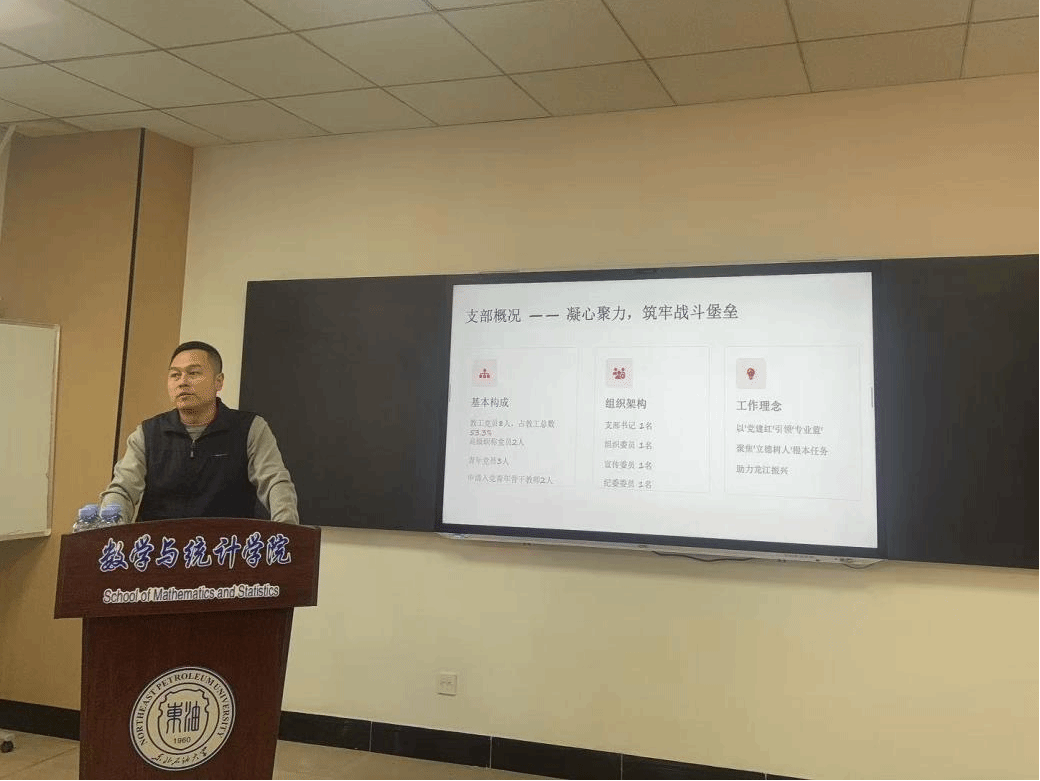金天坤则介绍了数学教工党支部在加强思想政治引领、发挥党员先锋模范作用、促进教学科研融合等方面的特色举措和成功经验。通过经验分享,双方进一步增进了了解,为后续的互学互鉴、共同提升奠定了基础。